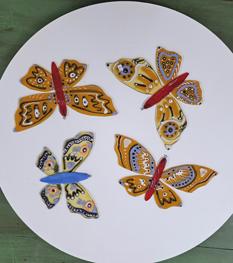 Regelmatig geef ik workshops met een thema in mijn atelier, bijv. een schaal, raamhanger en vlinders.