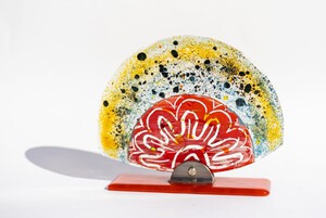 2011Quinita is een glasobject van gebrandschilderd en gefused glas.